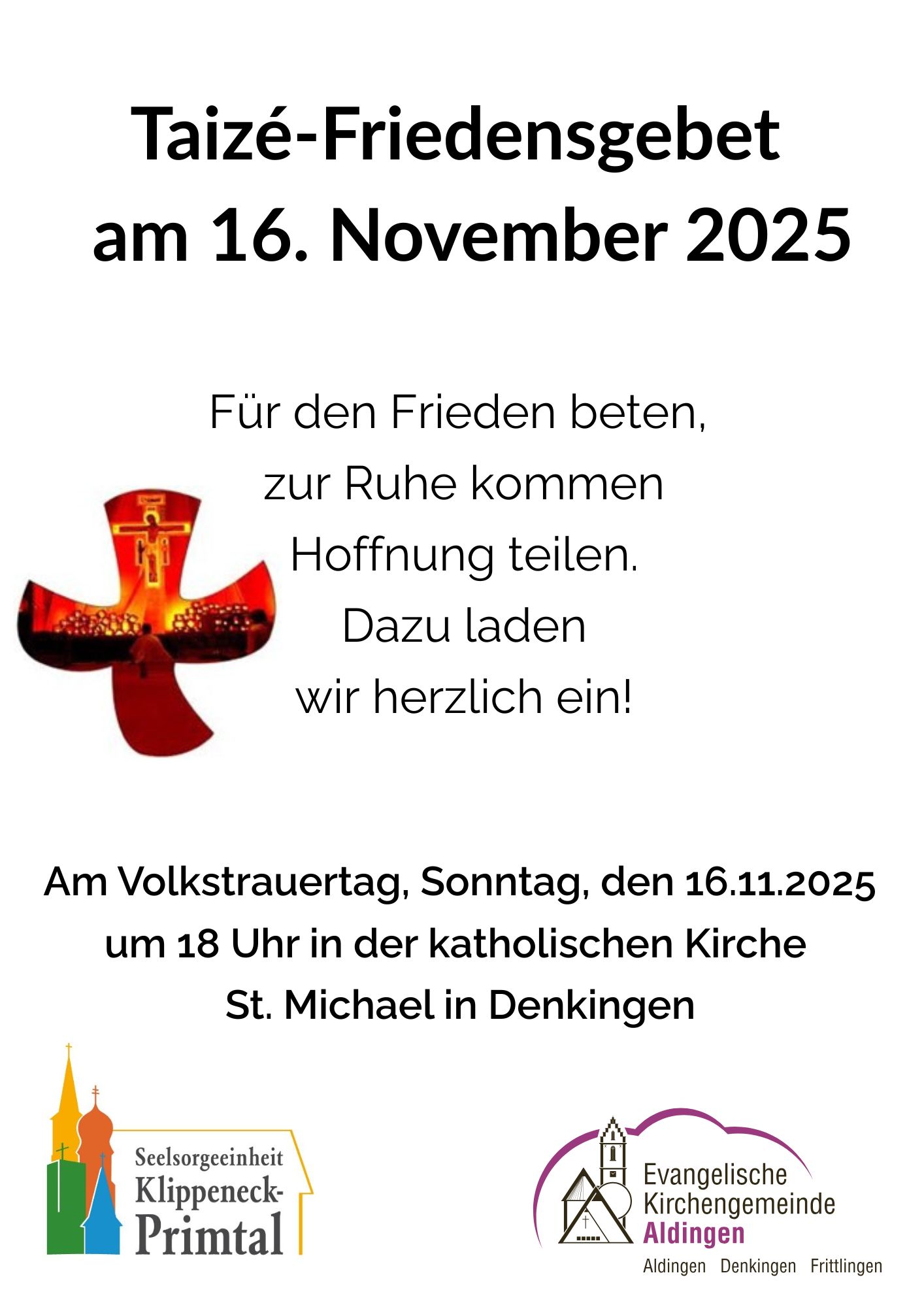 Friedensgebet am Volkstrauertag um 18 Uhr in Denkingen (16.11.2025)